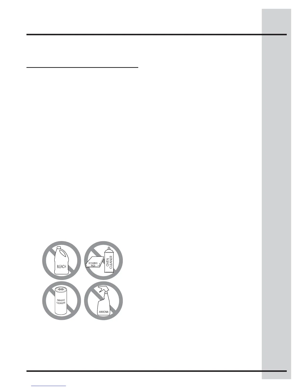 ammonia or oven cleaners, as they may etch or