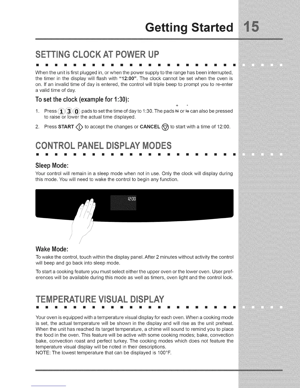 To start a cooking feature you must select either the upper oven or the lower oven. User pref-