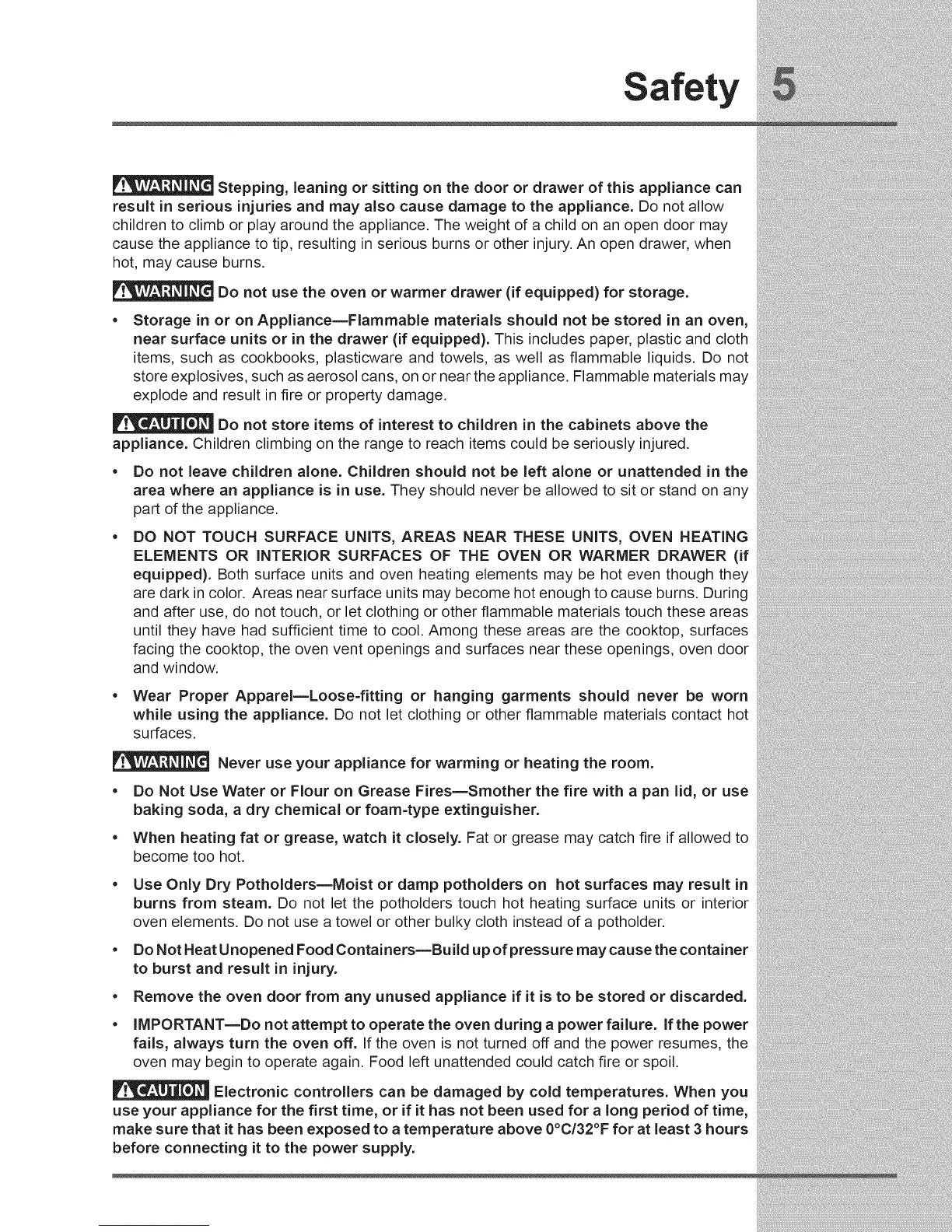 . Storage in or on AppliancemFlammable materials should not be stored in an oven,