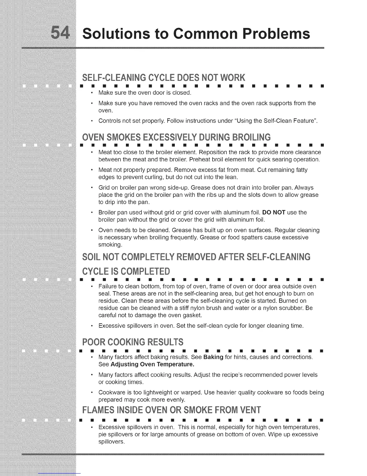 • Excessive spillovers in oven. Set the self-clean cycle for longer cleaning time.