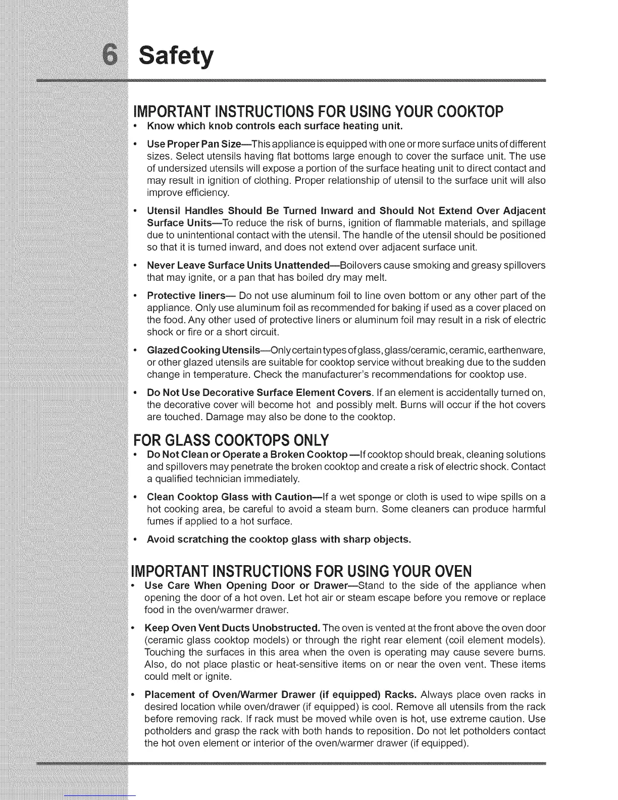 of undersized utensils will expose a portion of the surface heating unit to direct contact and