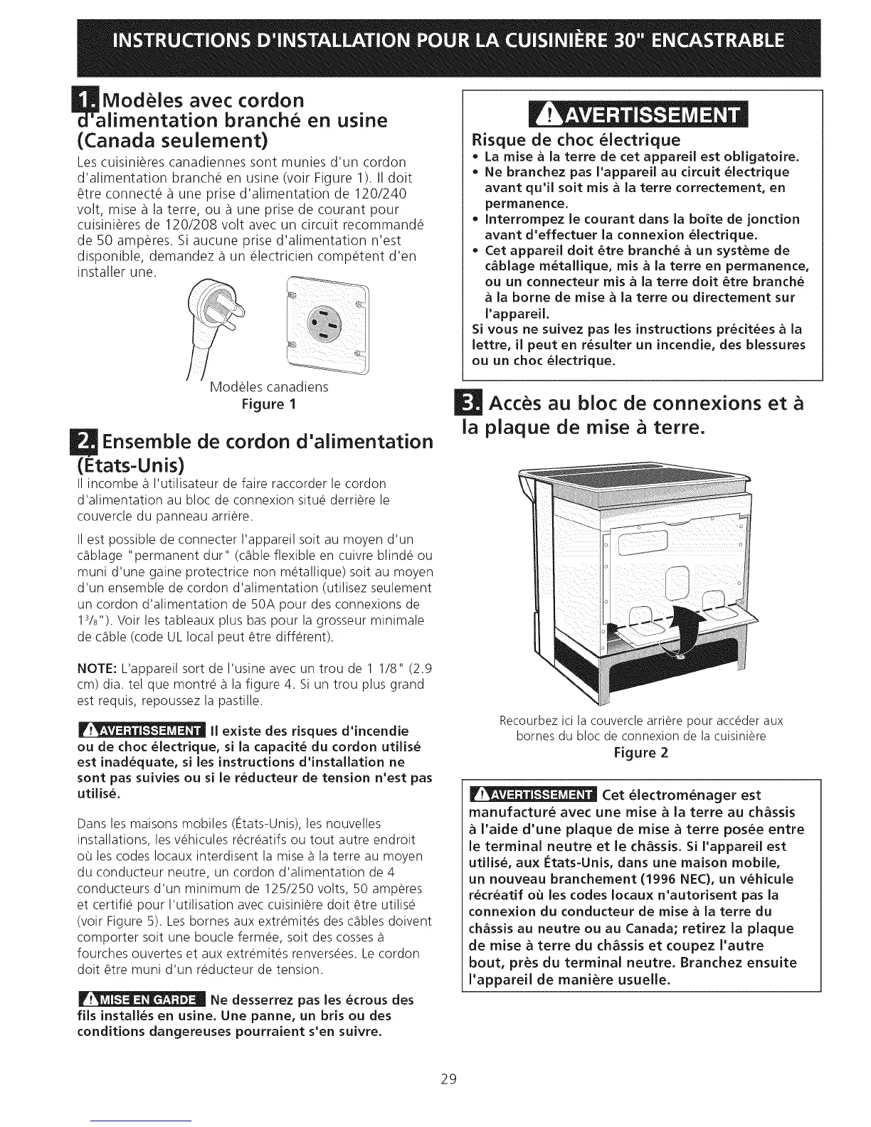 de 50 amperes. Si aucune prise d'alimentation n'est