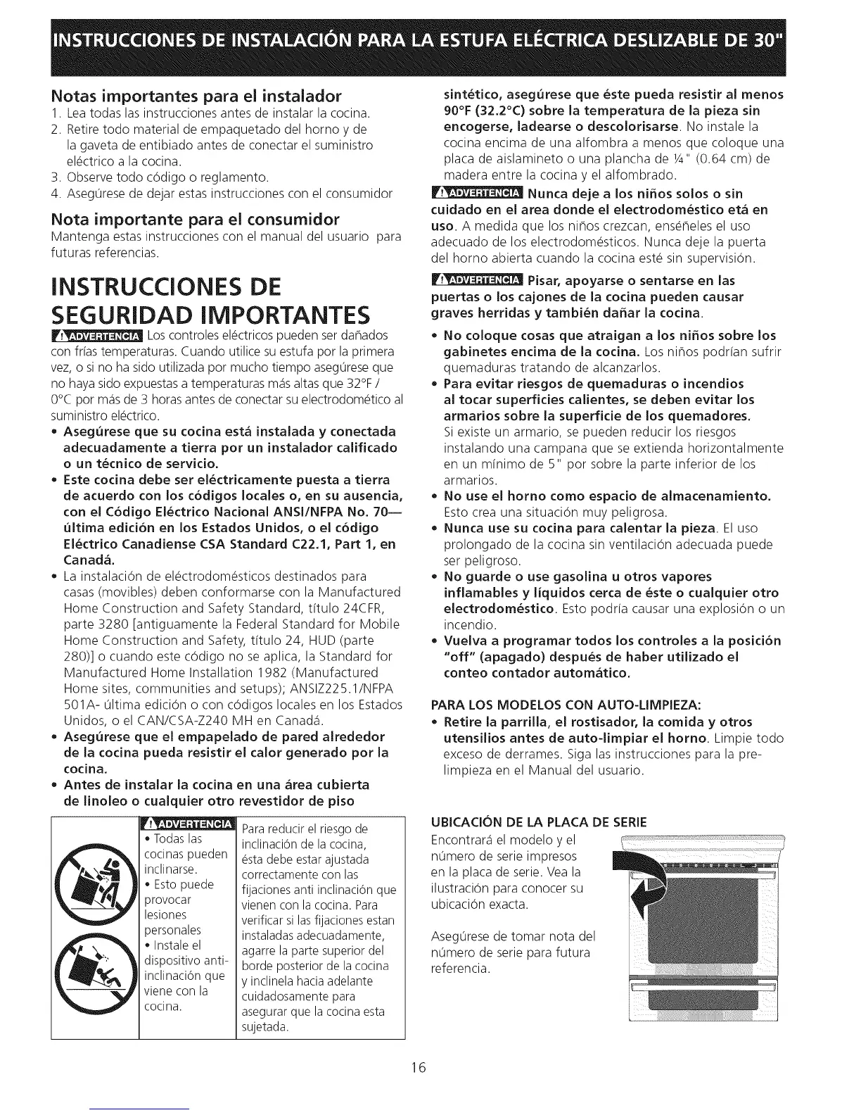Notas irnportantes para el instalador
