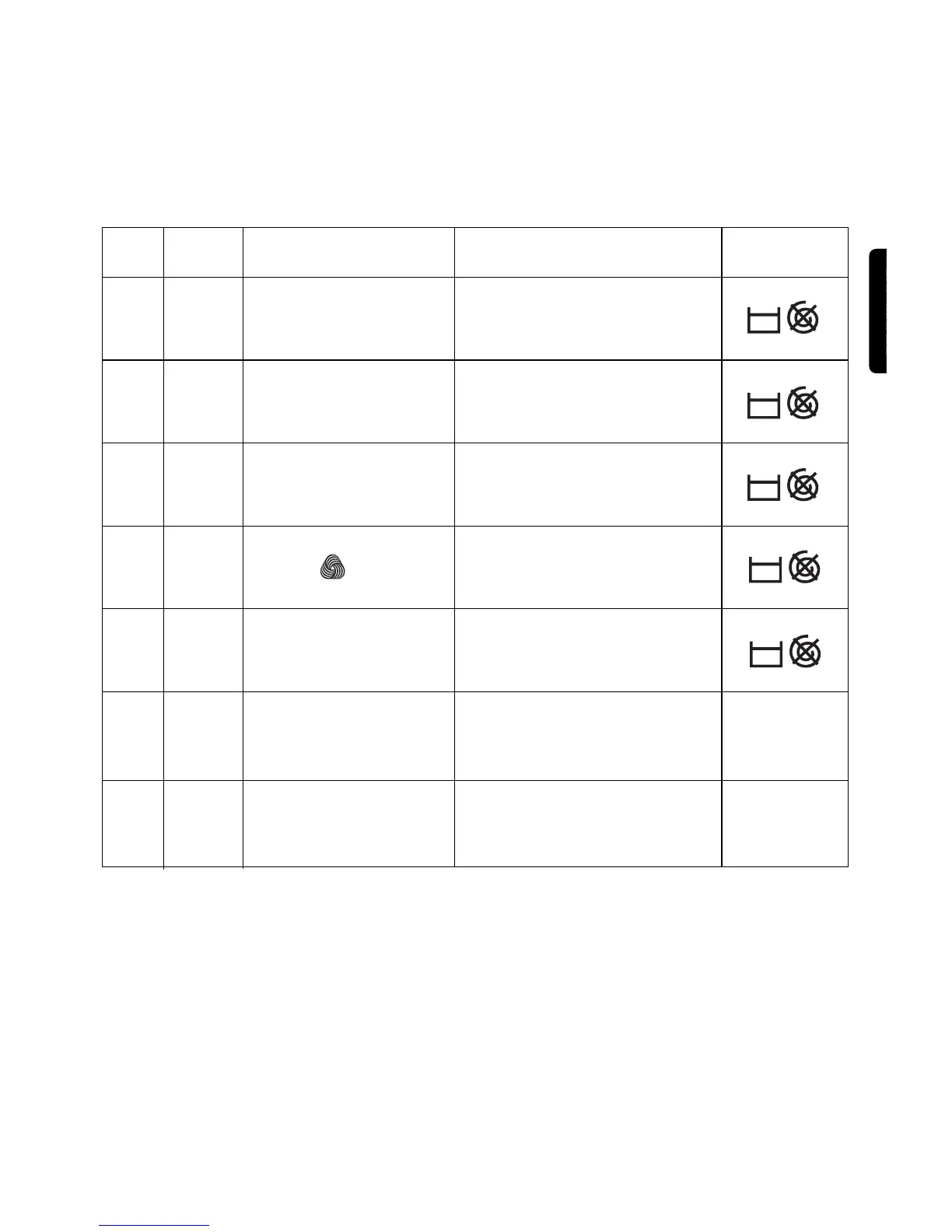 Progr. Temp. Type of laundry Cycle description