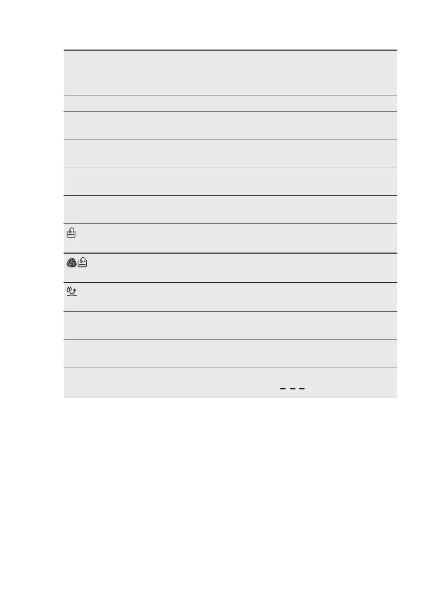 Programme temperature, maximum spin speed and maximum load
