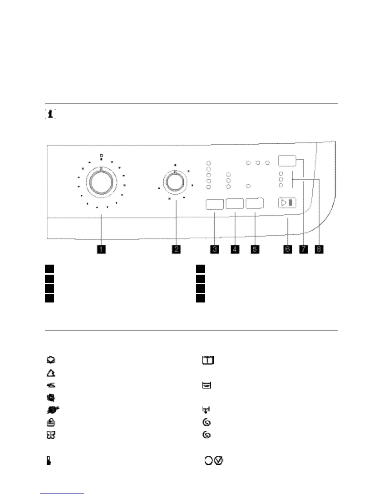 Below is a picture of the control panel. It shows the programme selector dial as well as
