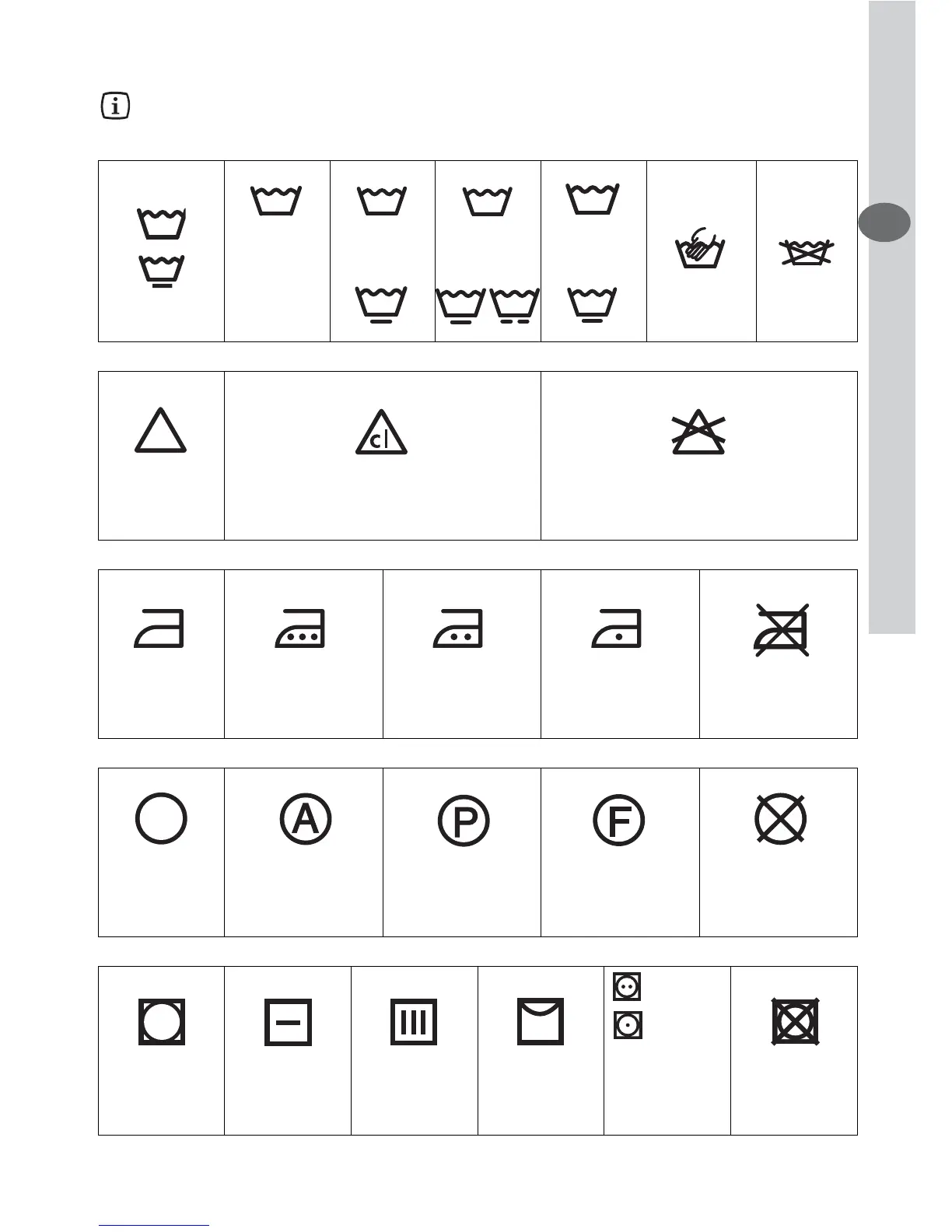 These symbols appear on fabric labels, in order to help you choose the best way to treat your laundry.