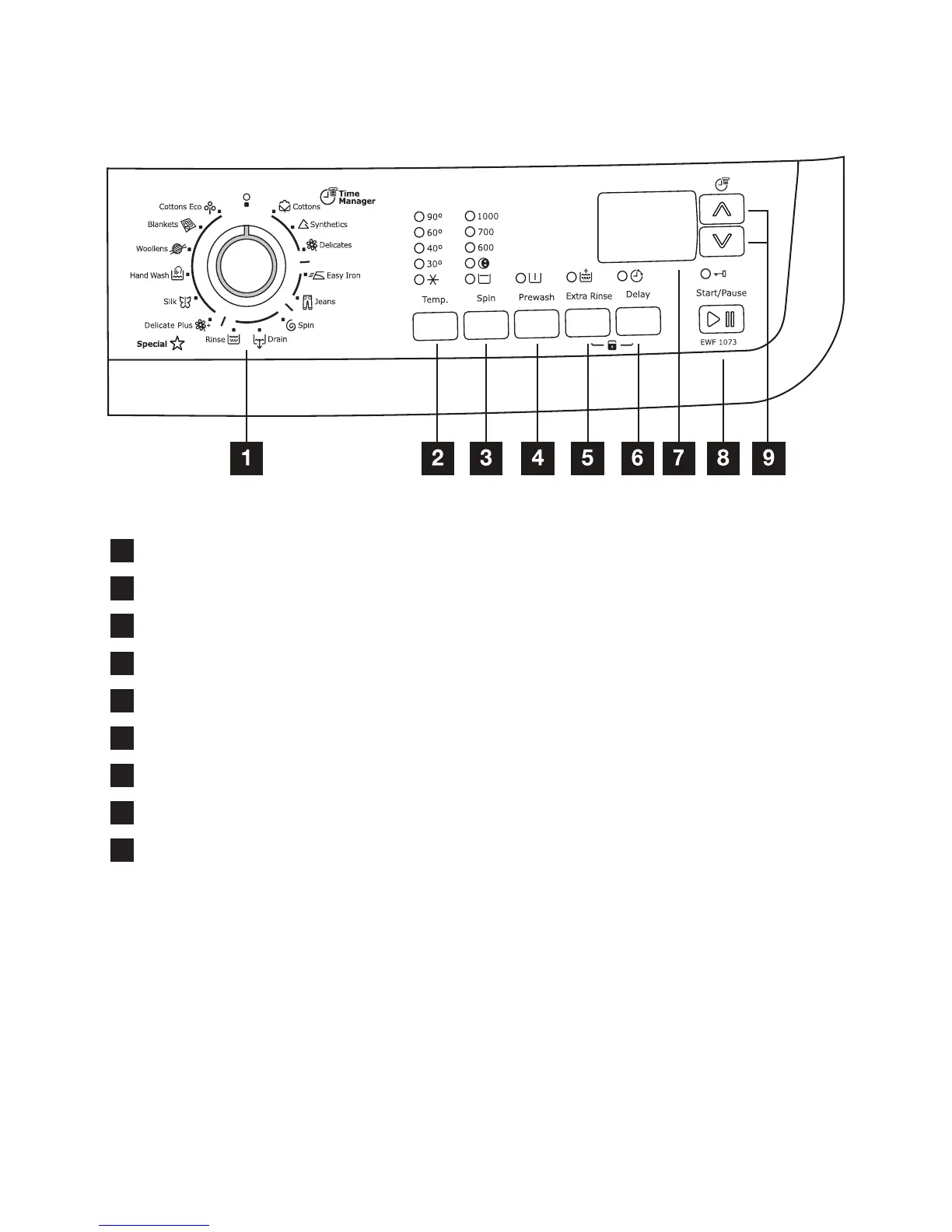 Electrolux EWF 1073 - Control Panel Overview; Buttons and Display Functions