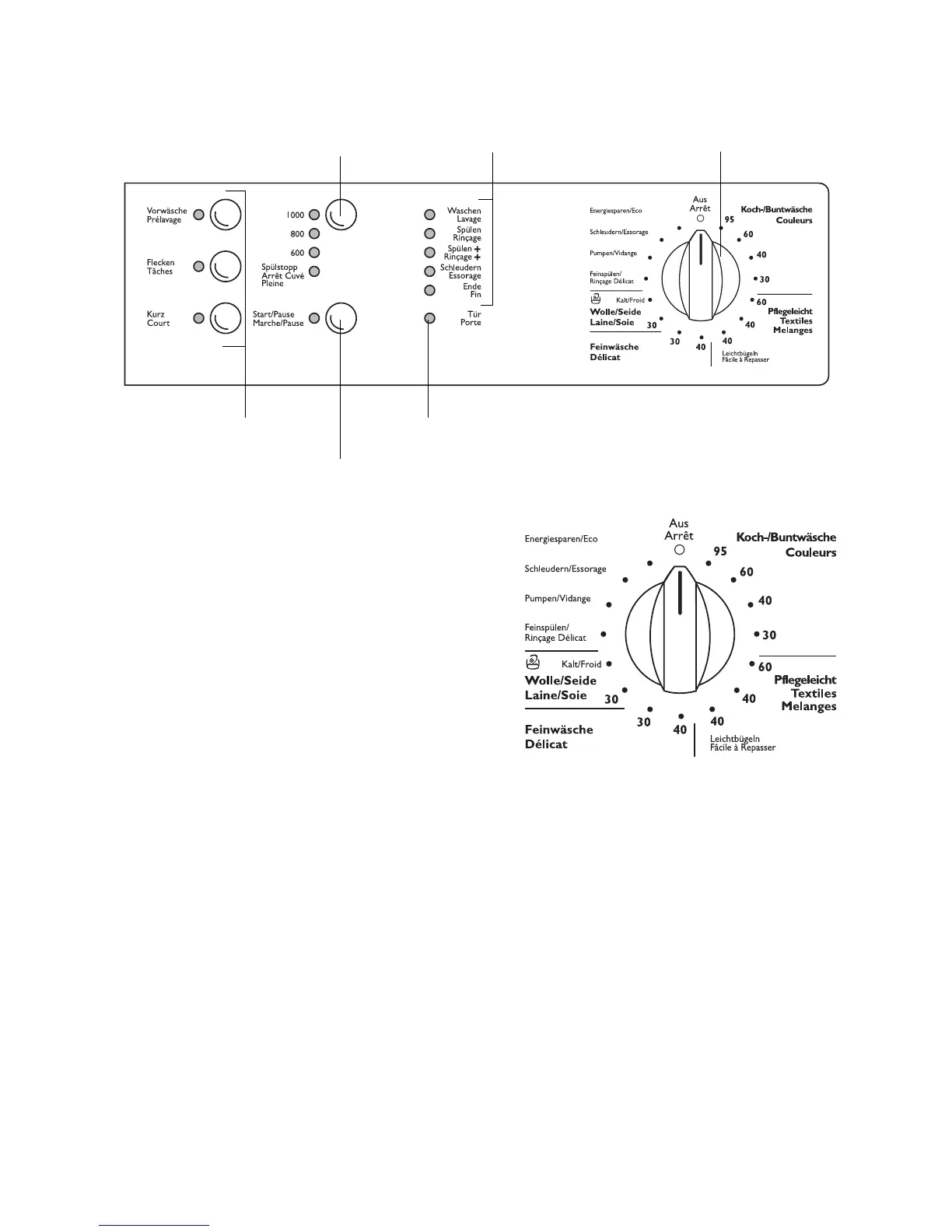 The programme knob is used to set the wash cycle
