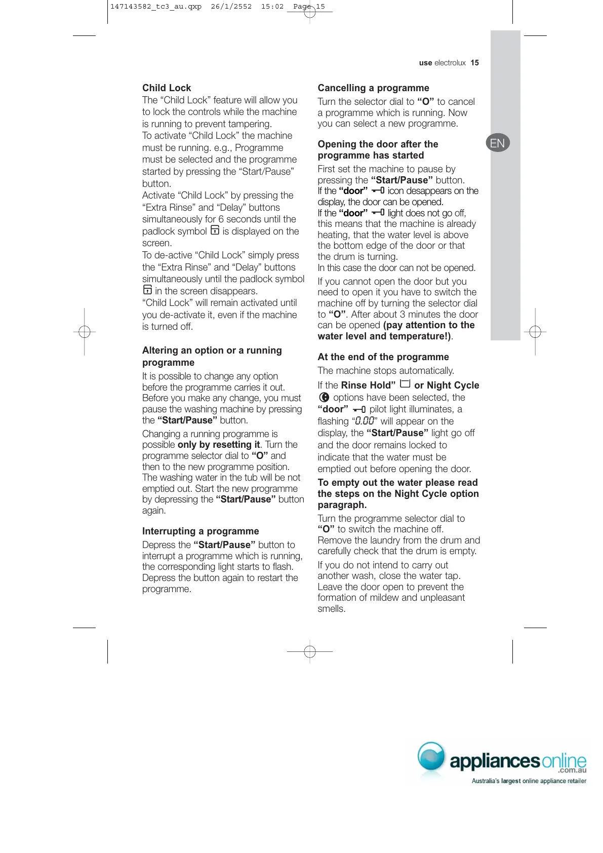 fÑ=íÜÉ=Rinse Hold” or Night Cycle