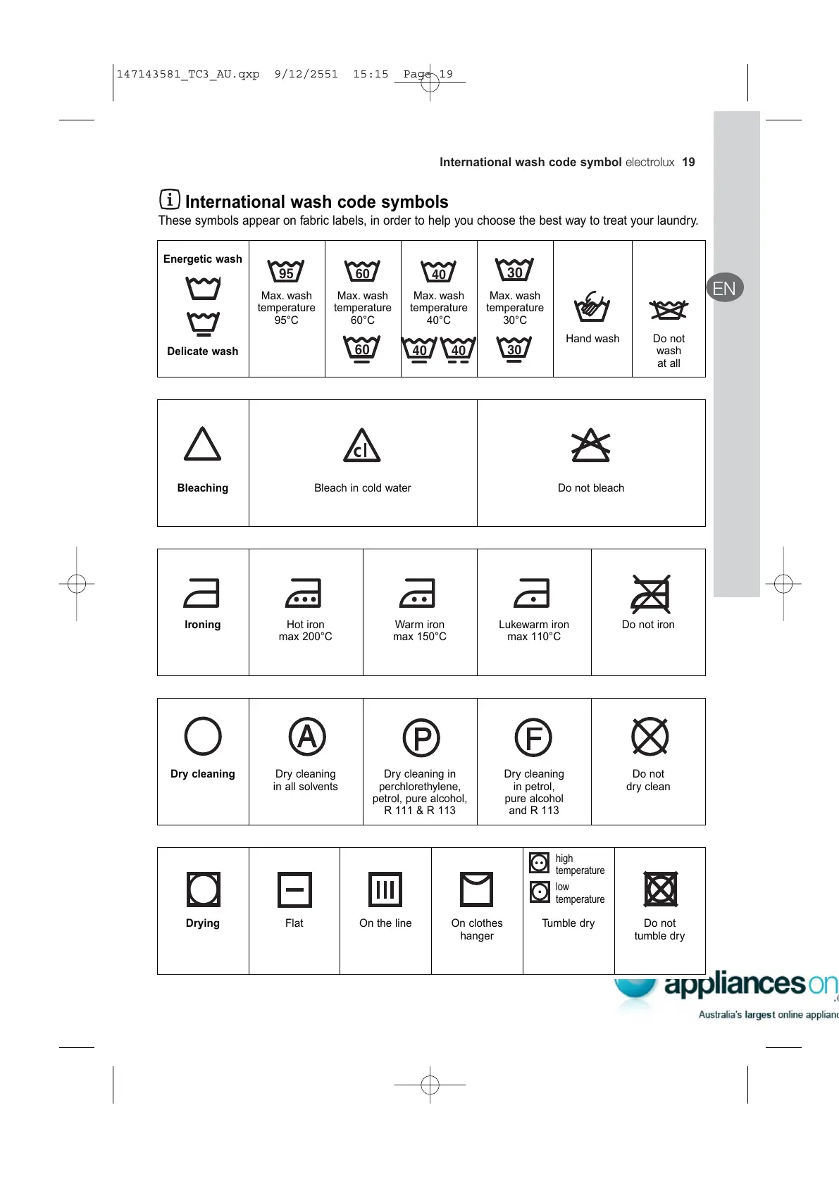 Electrolux EWF 1083 - International Wash Code Symbols