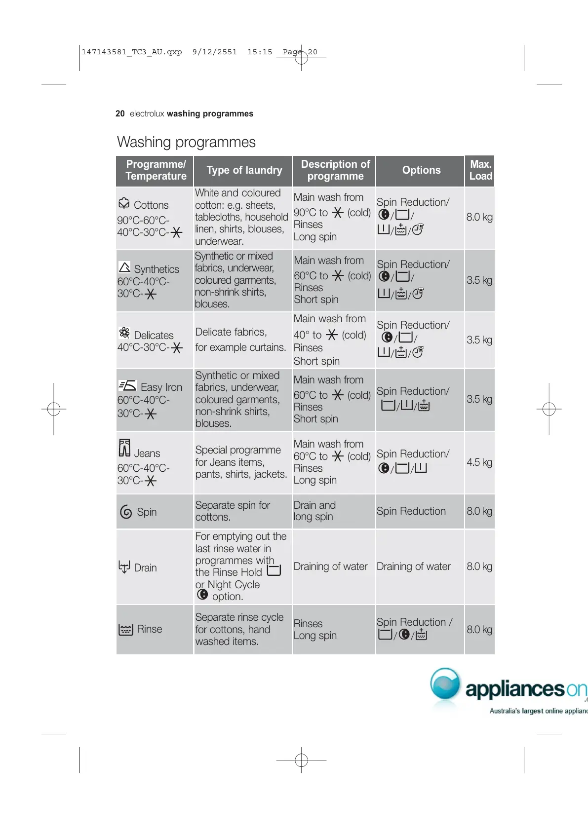 20 ÉäÉÅíêçäìñ washing programmes