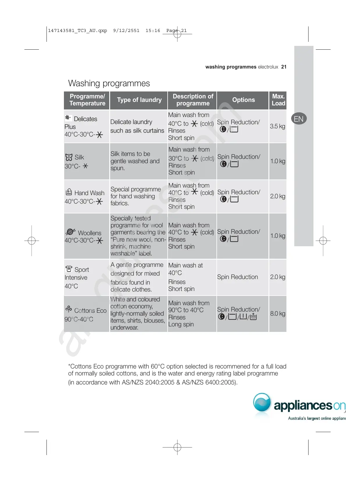 washing programmes ÉäÉÅíêçäìñ==21