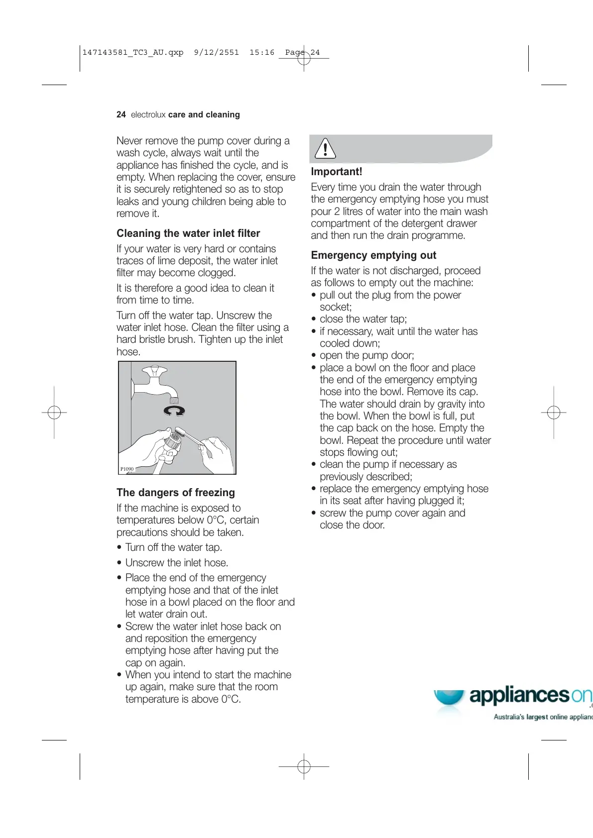 Cleaning the water inlet filter