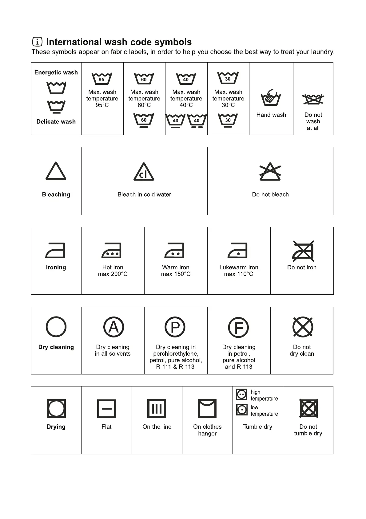 Electrolux EWF 1090 - Internationnal Wash Code Symbols