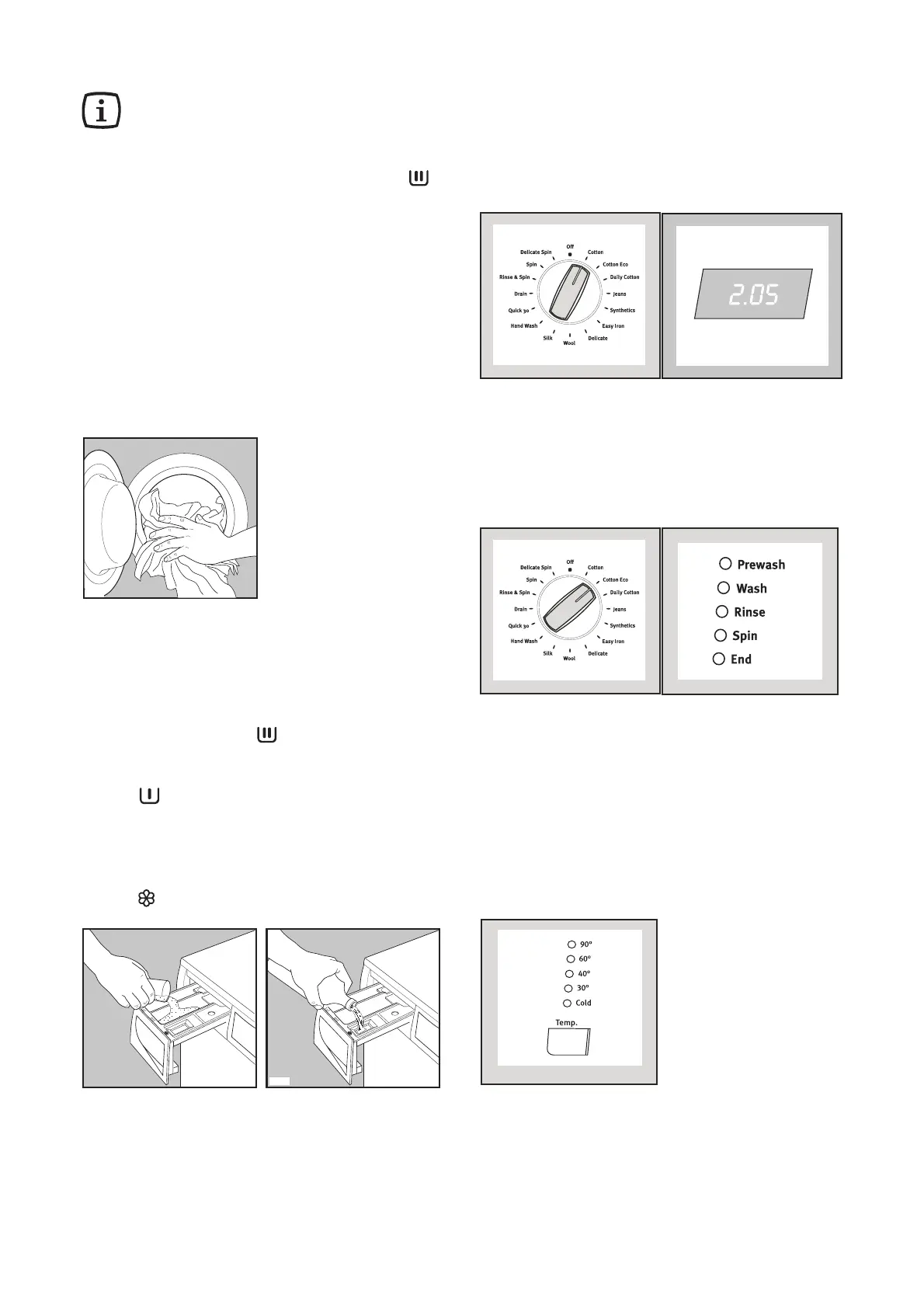 the washing machine. The relevant LED will light up.