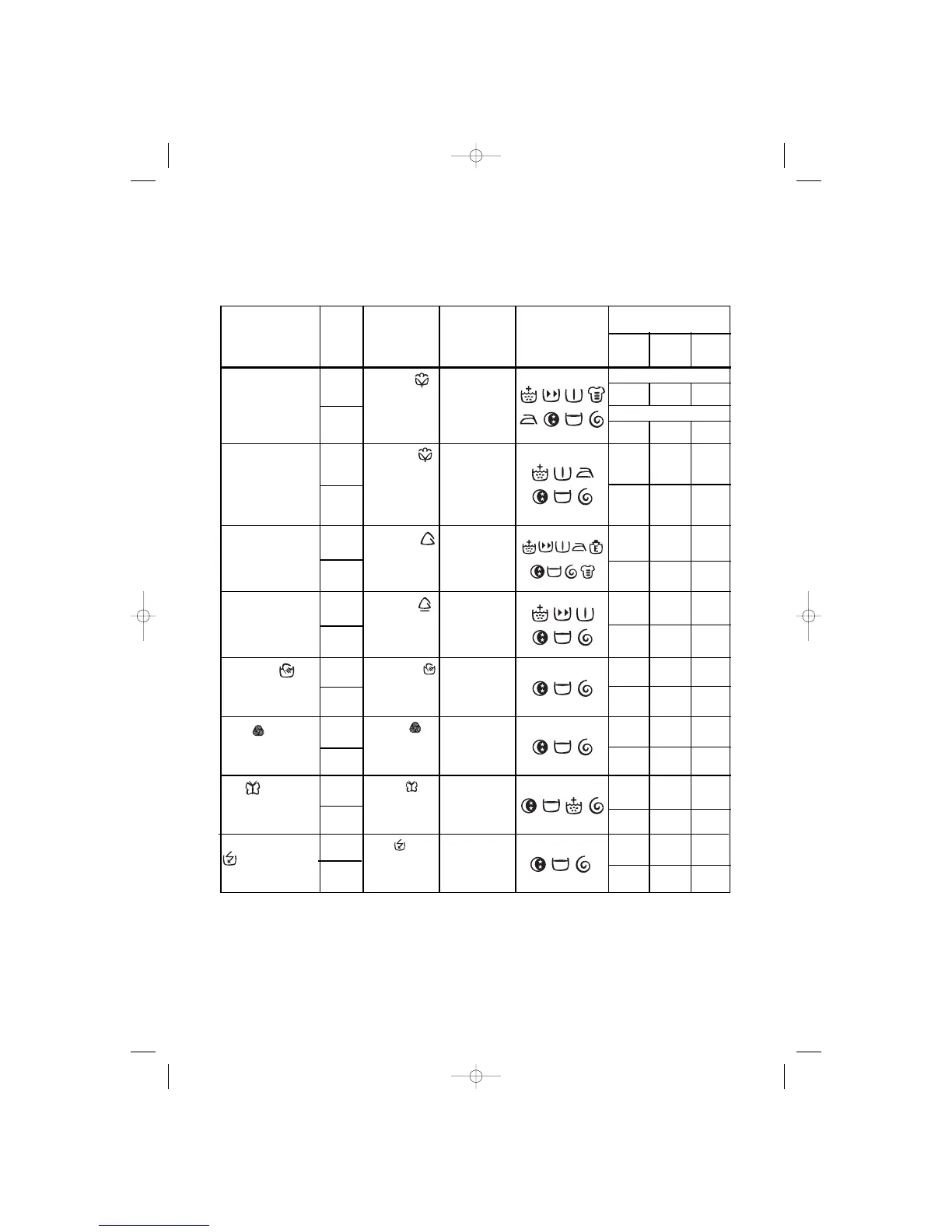 Electrolux EWF 1245 - Washing Programmes Overview; Standard Programme Chart