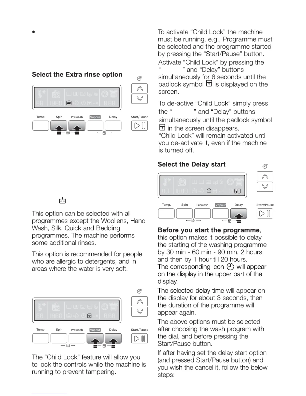 the “Spin”and “Prewash” buttons