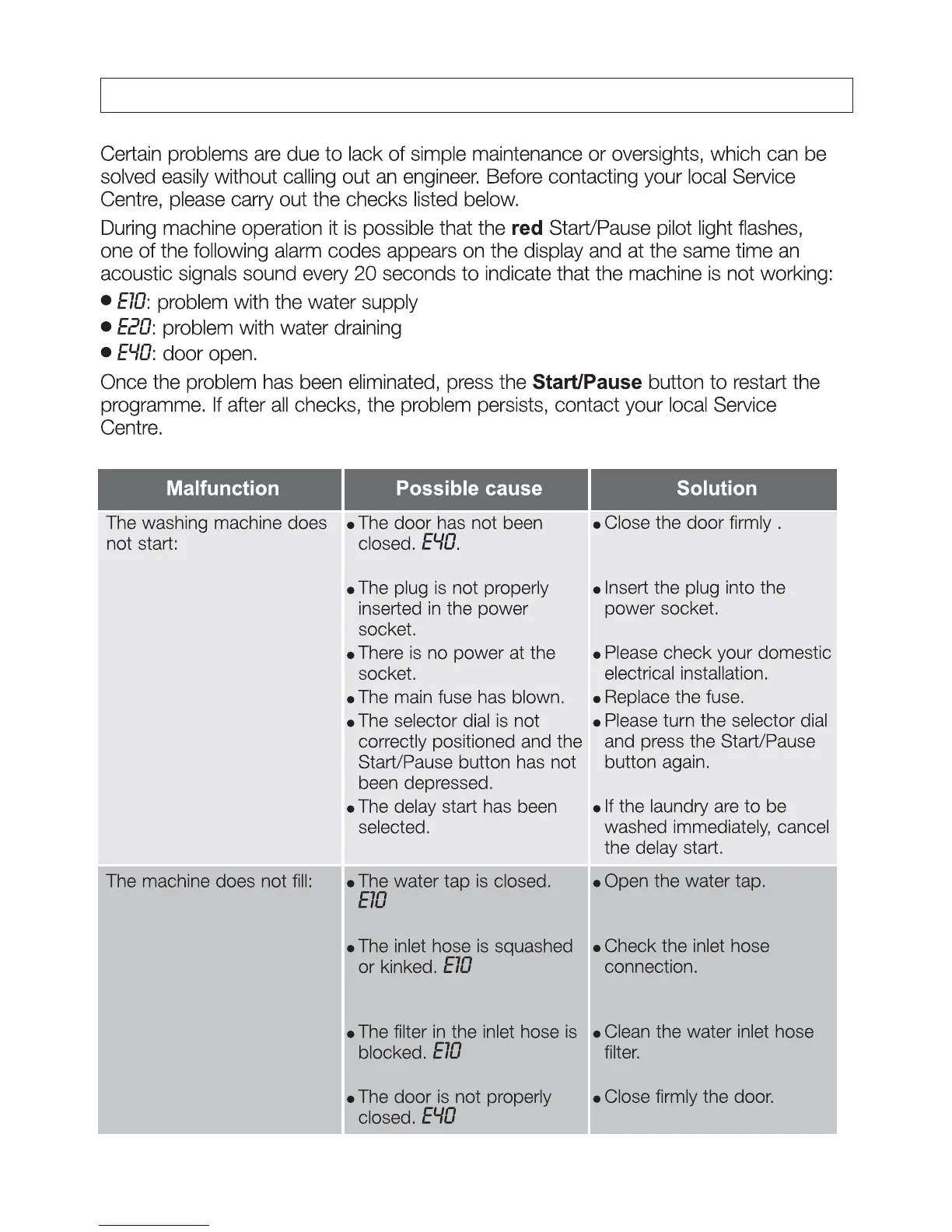 Electrolux EWF 12821 - Troubleshooting: Machine Operation Issues; Machine Start and Fill Problems