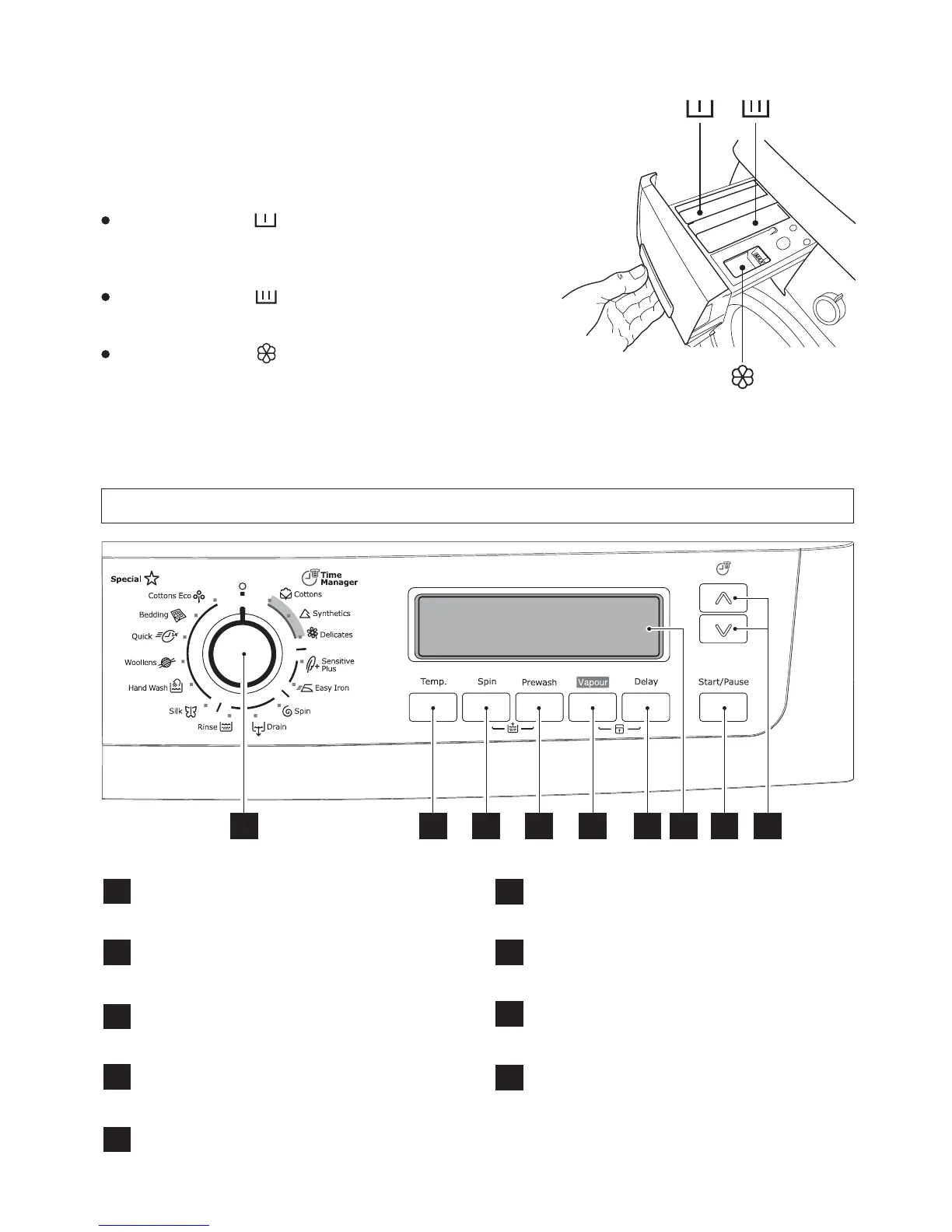 Always add laundry detergents before switching the machine on and keep the dispenser