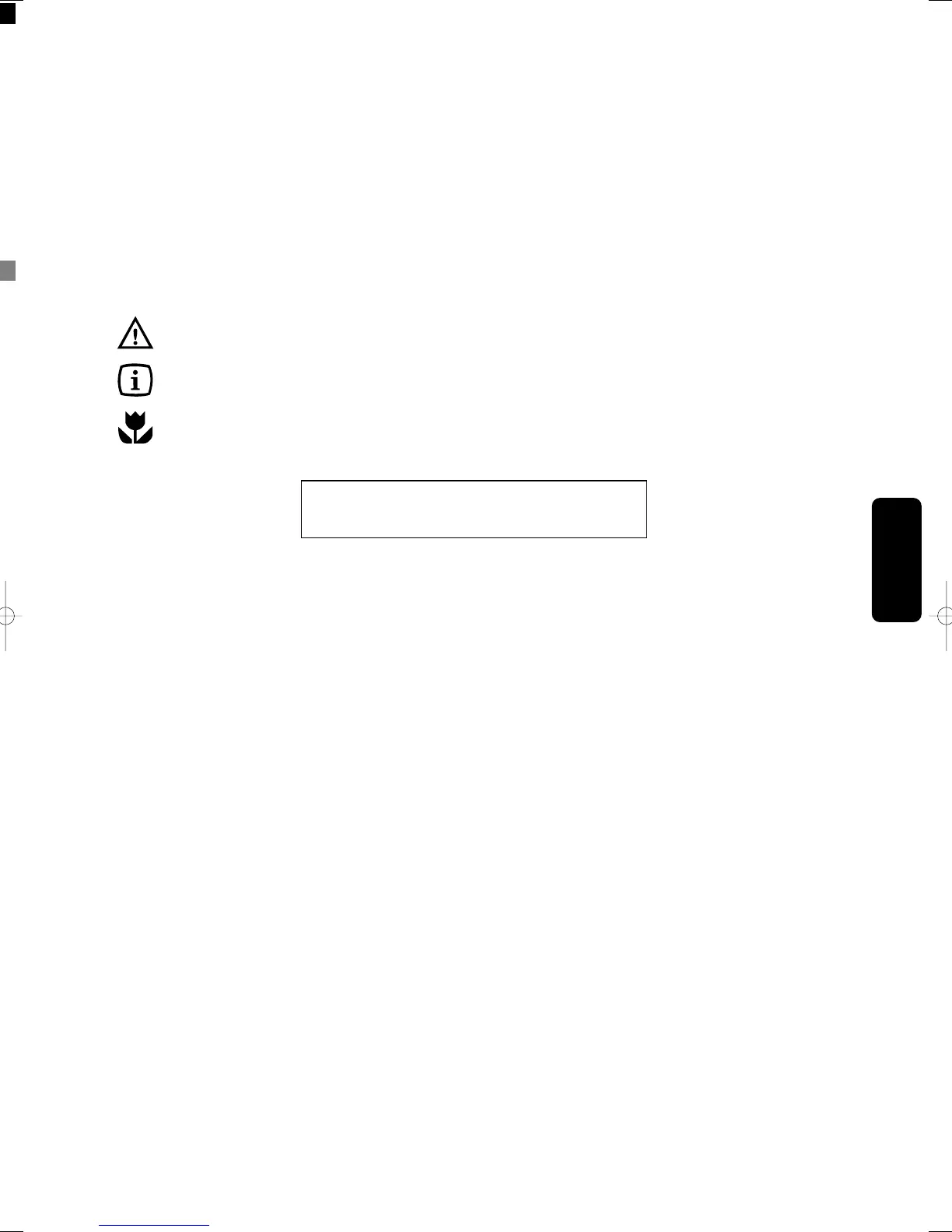 Tips and information about economical and ecological use of the machine are marked with this symbol.