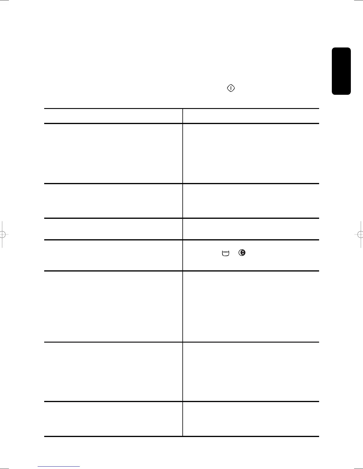 • The machine is not plugged in or there is no power