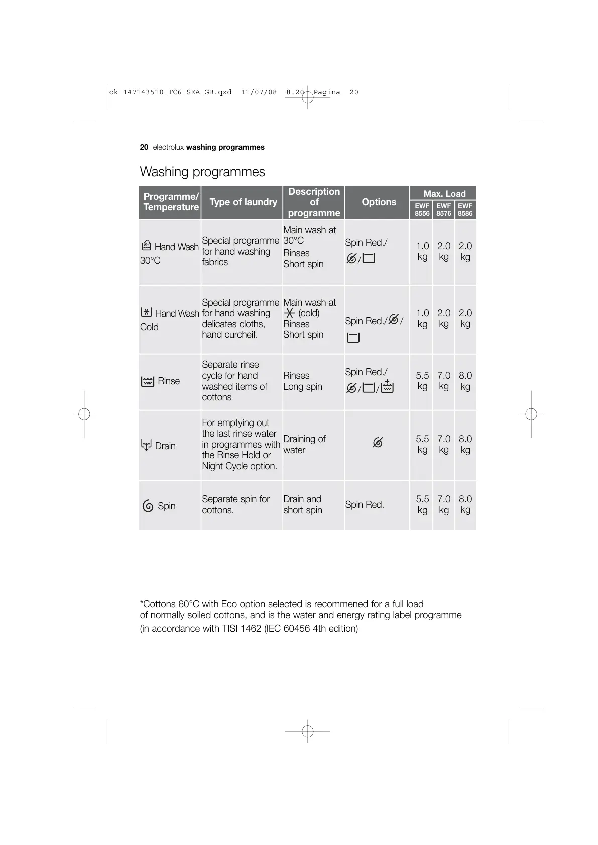 *Cottons 60°C with Eco option selected is recommened for a full load