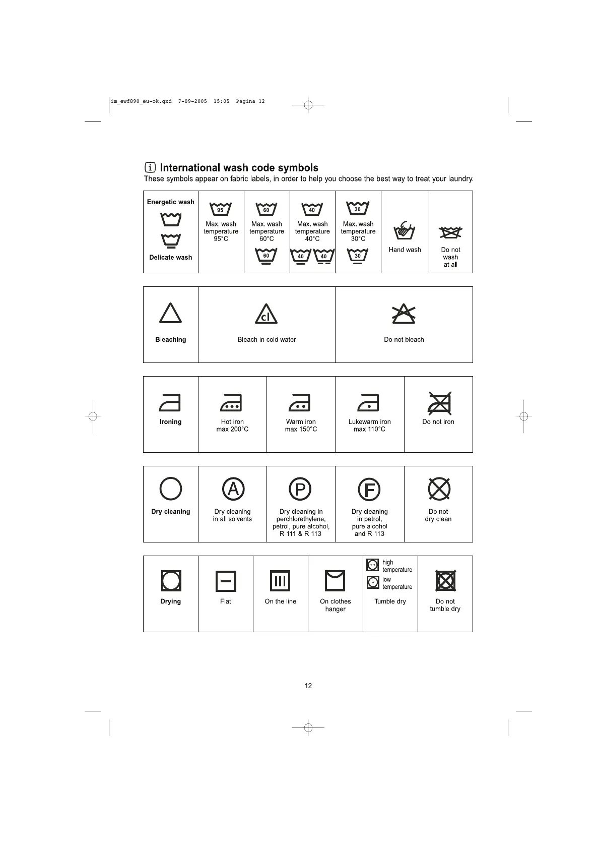 Electrolux EWF 890 - Internationnal Wash Code Symbols