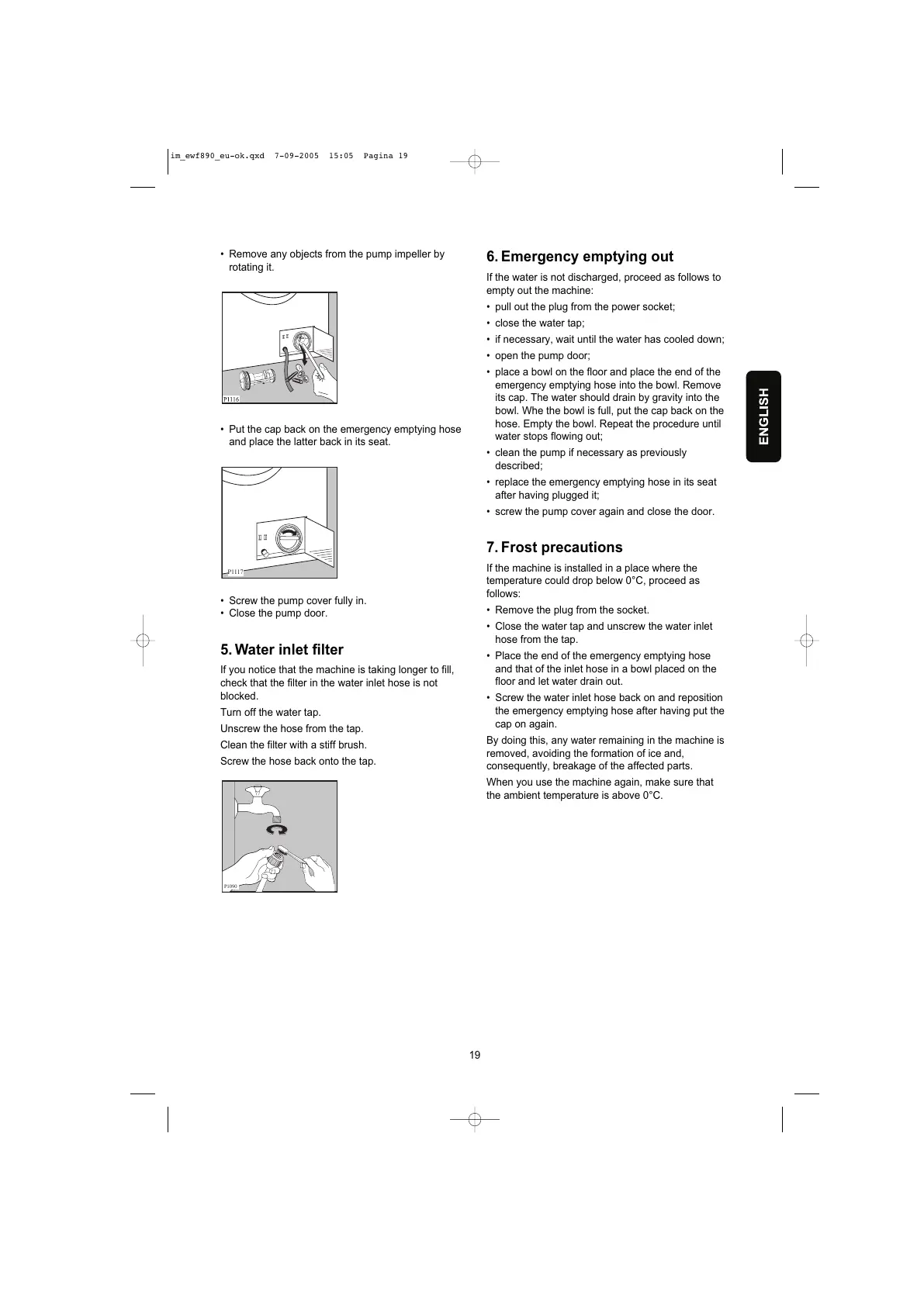 • replace the emergency emptying hose in its seat