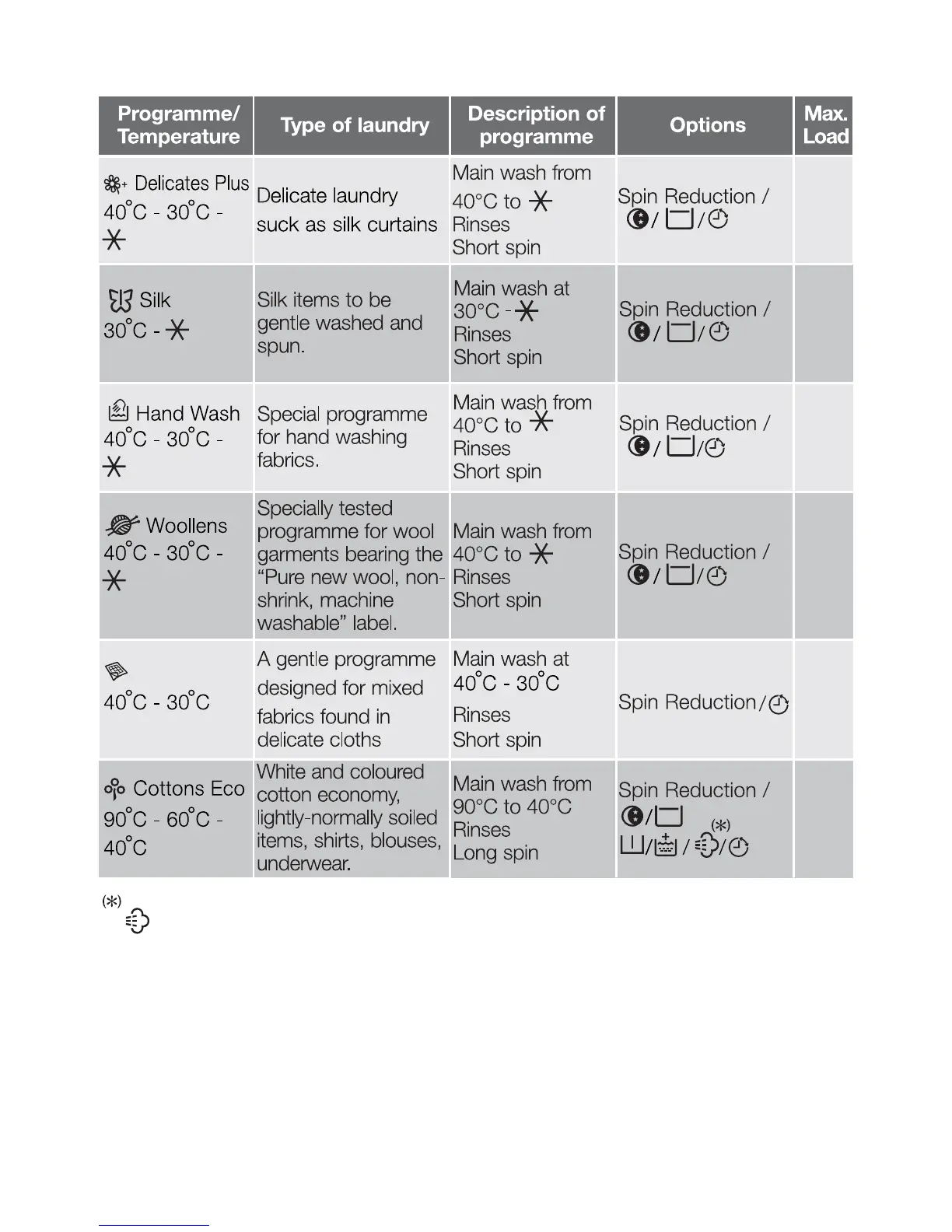 22 electrolux washing programs