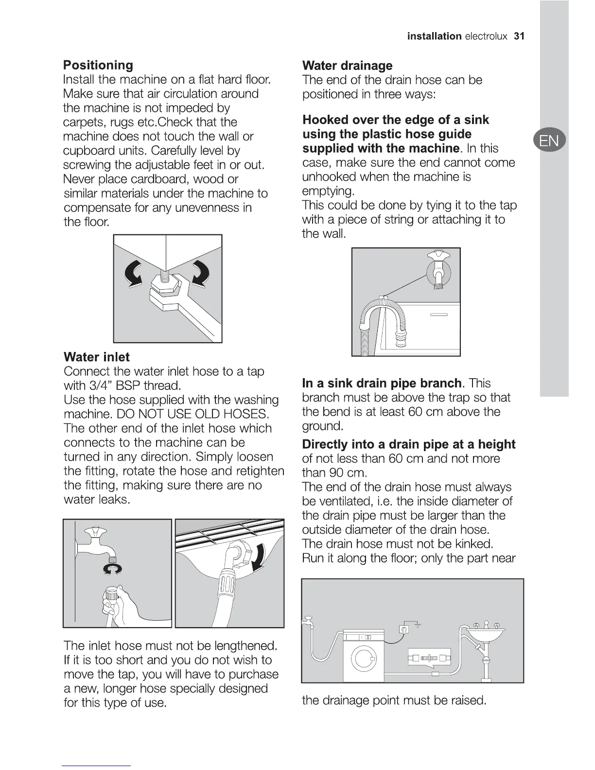 Electrolux EWF10841 - Water Inlet and Drainage Connections