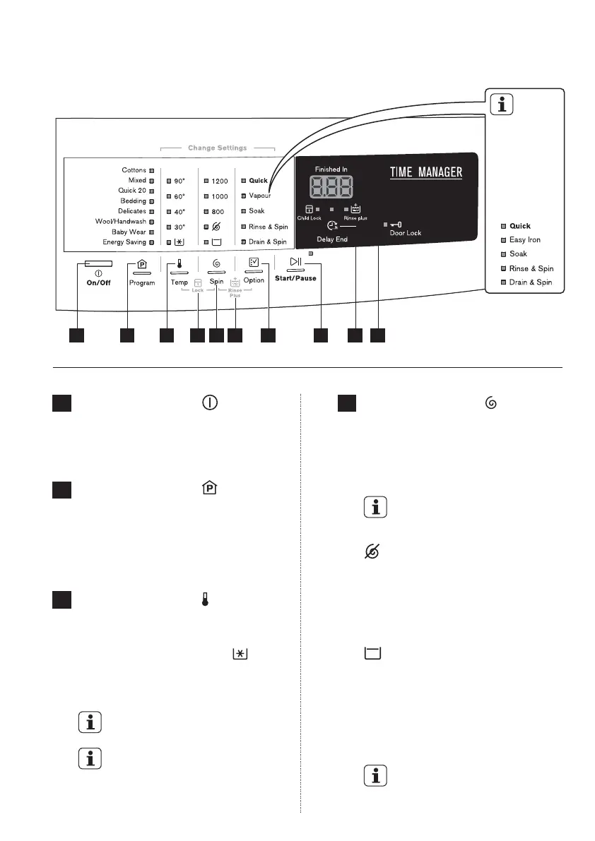 按该触摸板的来选择洗涤程序。