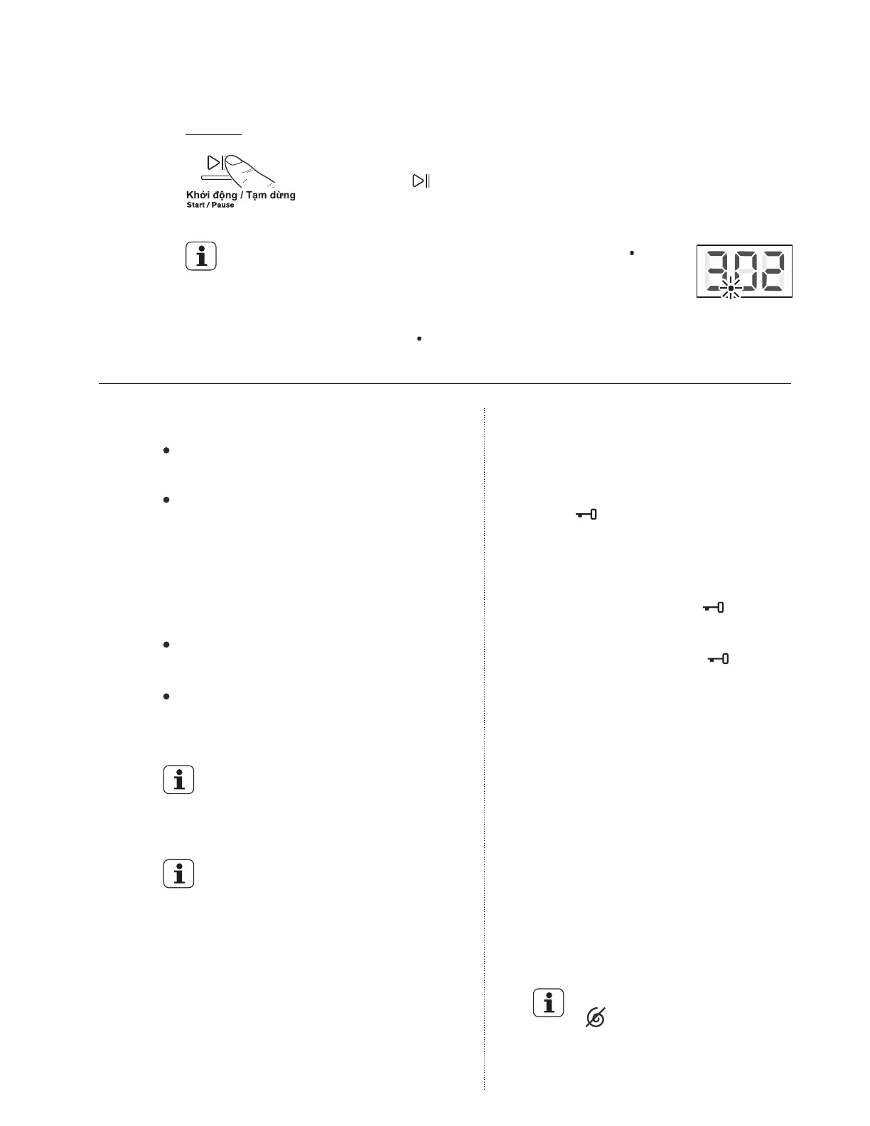 Chú ý: Sau khi bắt đầu chương trình giặt, dấu chấm ( ) bắt
