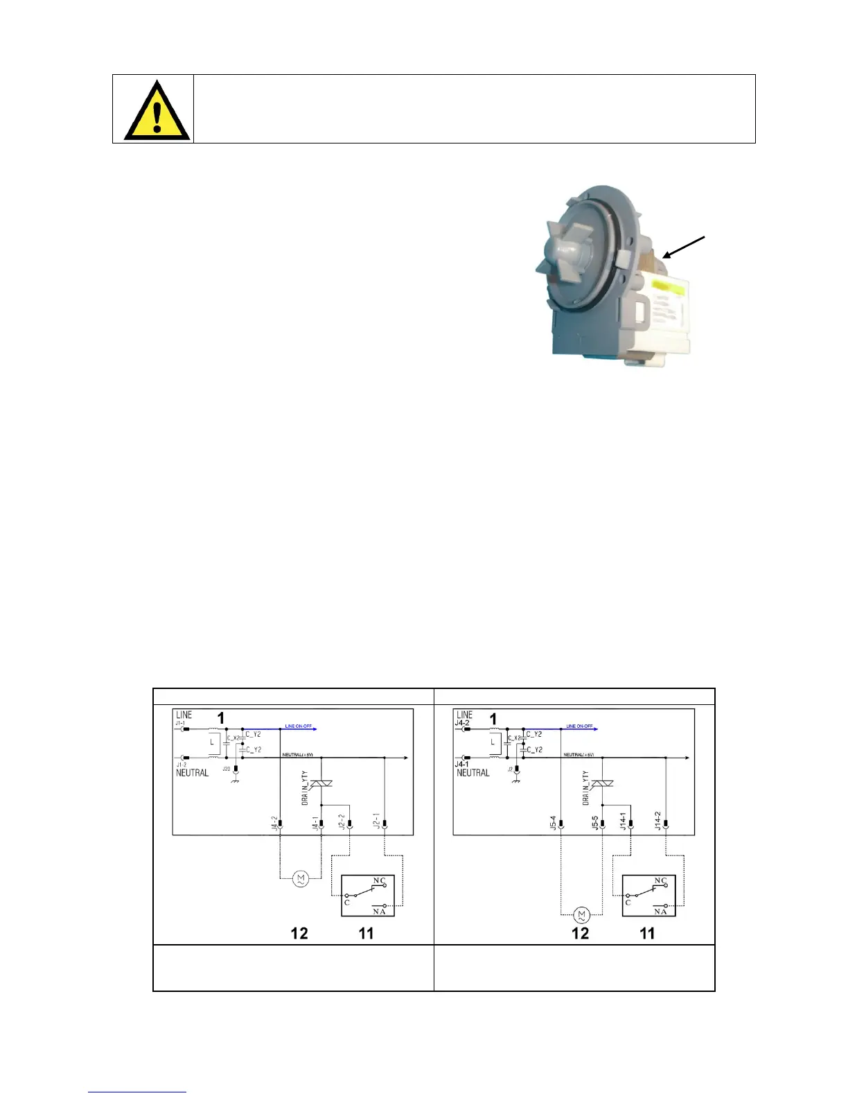 The drain pump is powered by the main circuit board through a triac, as follows: