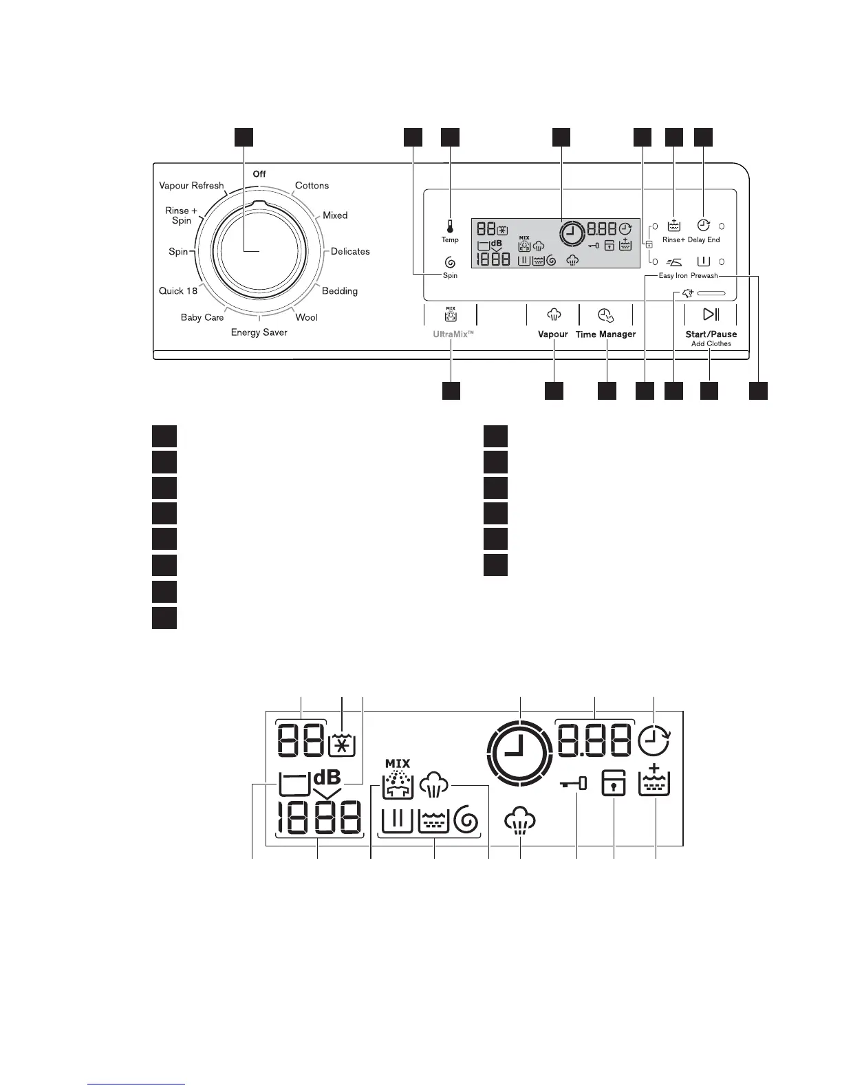 Electrolux EWF12933 - CONTROL PANEL AND DISPLAY; Control Panel Functionality; Display Symbols Explained