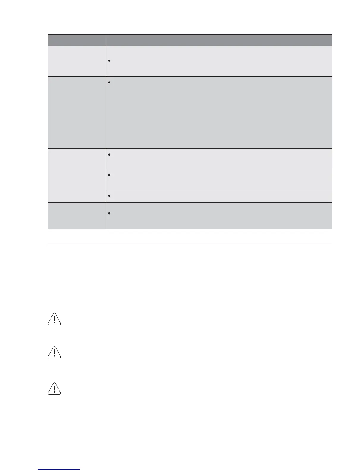Malfunction Possible cause => Solution