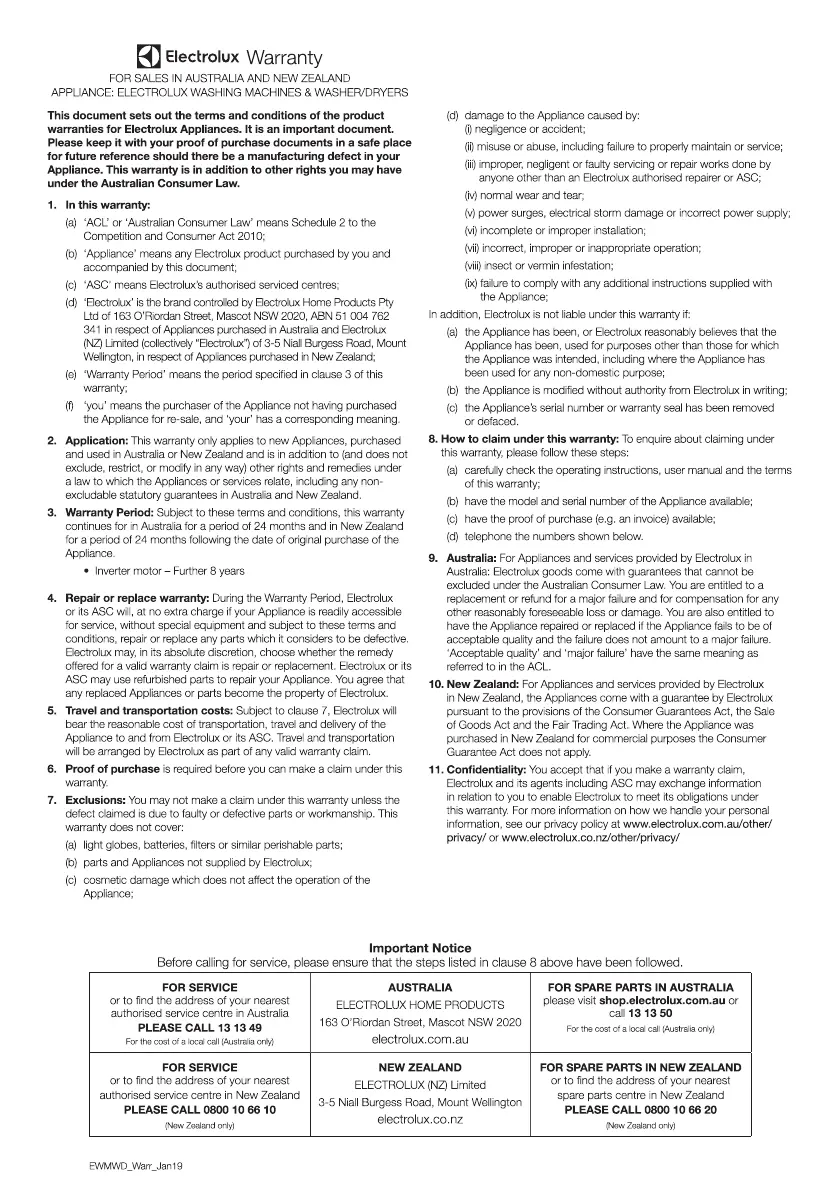 Electrolux EWF8024Q5WB - Electrolux Warranty