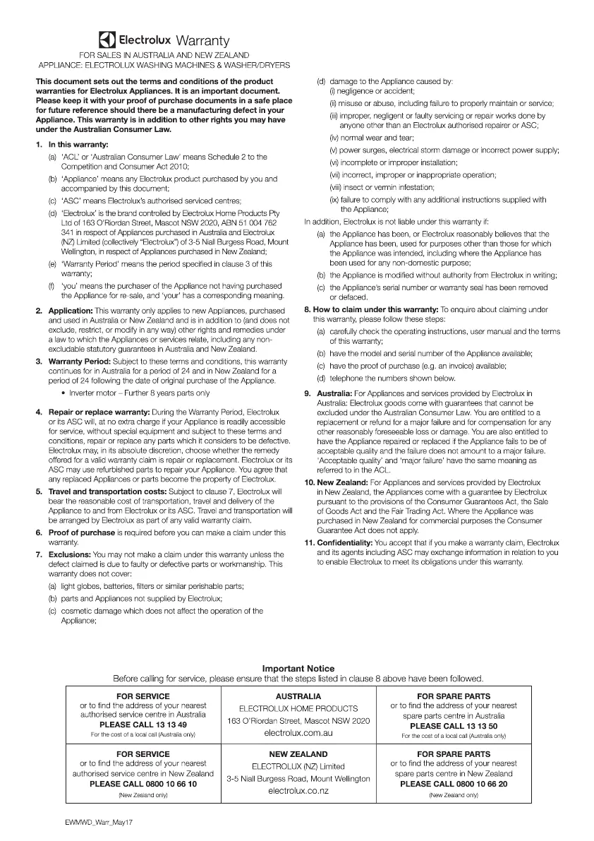 Electrolux EWF9043BDWA - Product Warranty Information; Warranty Period; Warranty Exclusions; How to Claim Warranty