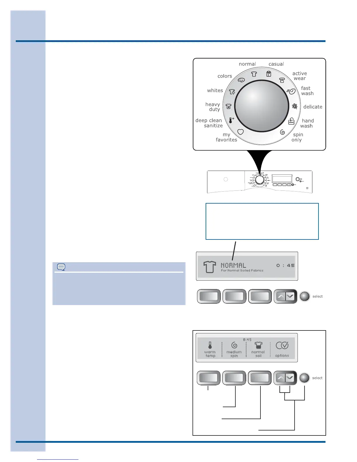 tings and options. See the “Cycle Selection”