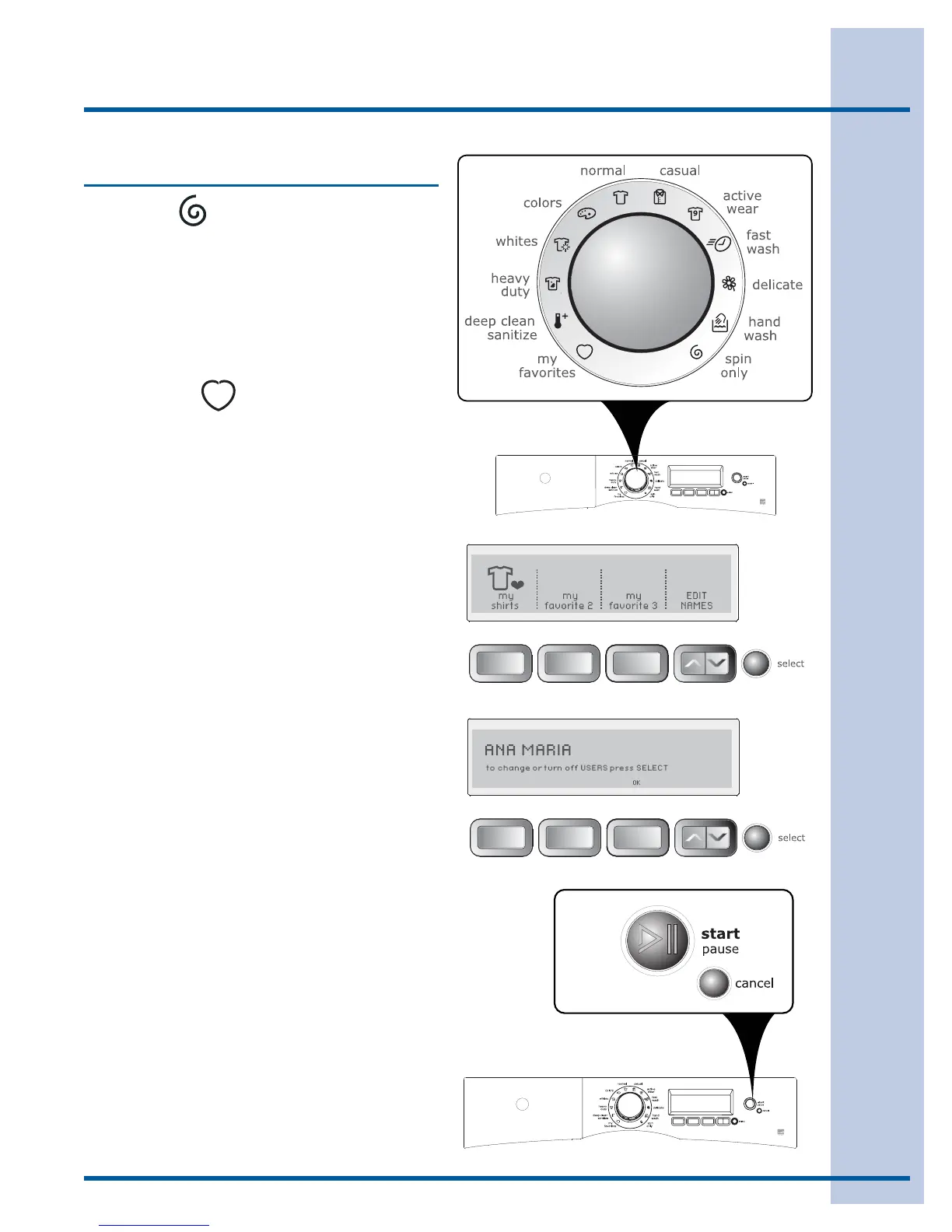 Turn the cycle selector knob to • my favorites.
