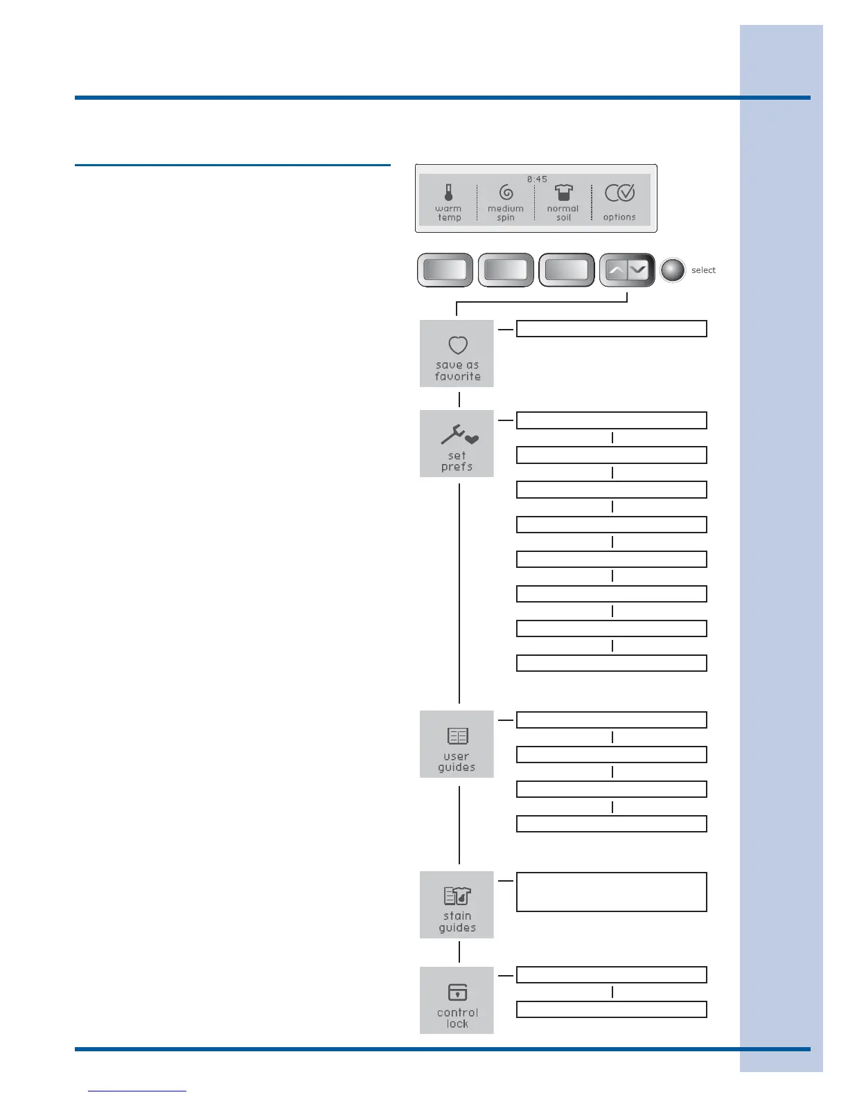 SETTINGS GUIDE, OPTIONS GUIDE, and SET