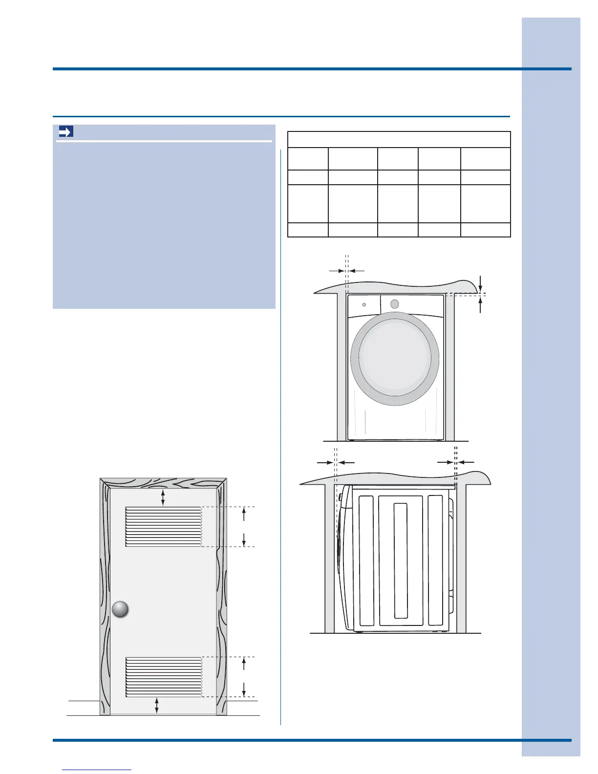 Armario 0 cm (0”) 0 cm (0”)* 0 cm (0”) 2,54 cm (1”)