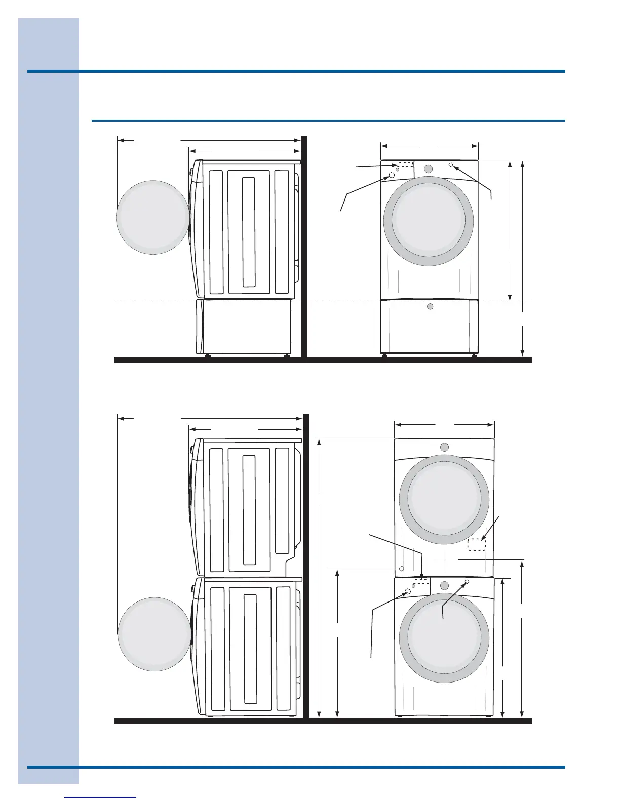 * To obtain these minimal depth dimensions, dryer must either be vented straight back or with a quick-turn 90° elbow.
