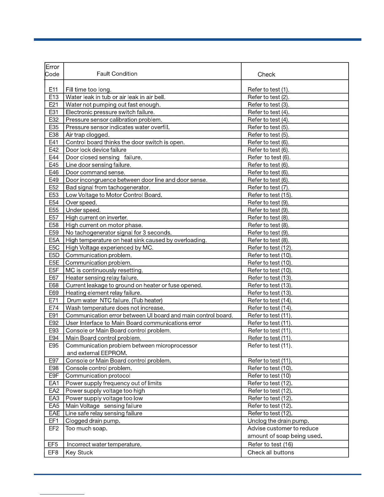 Electrolux EWFLW65H - Error Code Chart