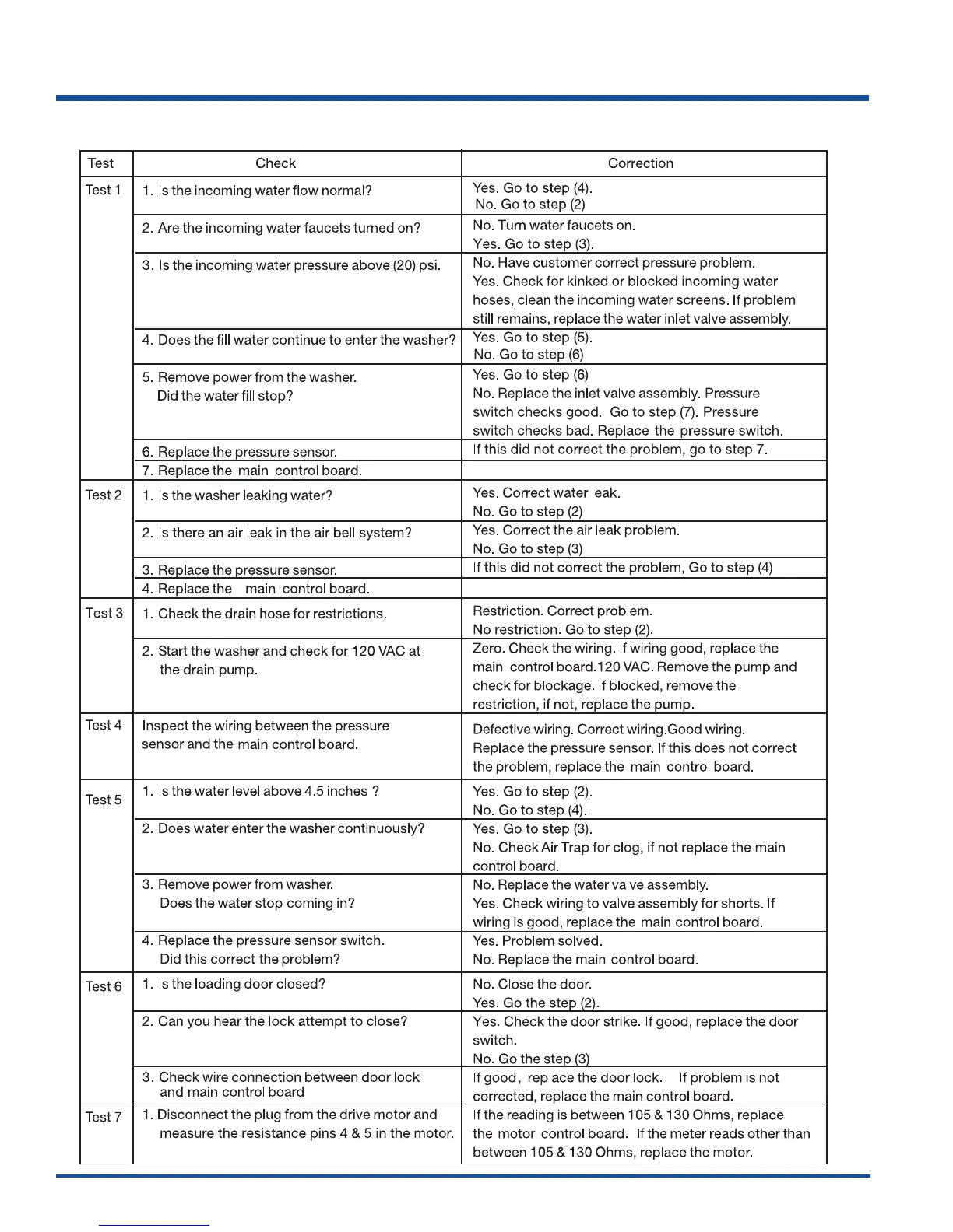 Electrolux EWFLW65H - Error Code Test Chart