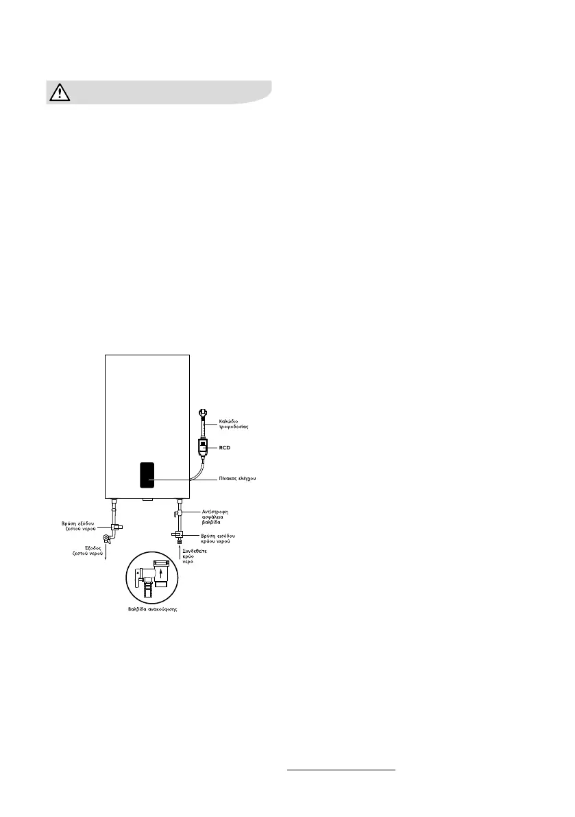 • Στην είσοδο κρύου νερού θα πρέπει να