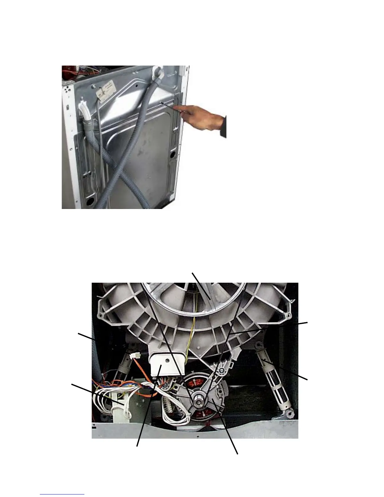 - In order to get access to motor, heating element, shock absorber, NTC, belt and pulley,