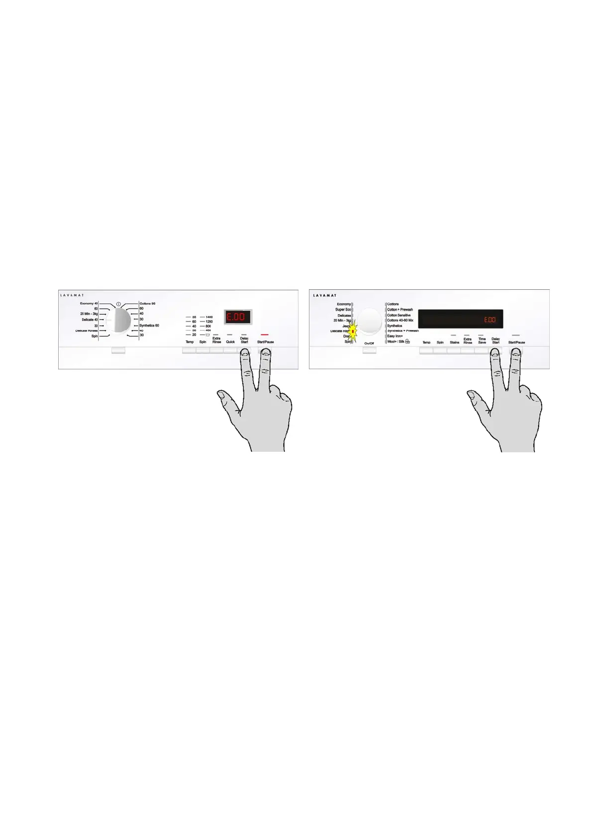4. Hold down the buttons (for at least 5 seconds) until the LCD display shows “E00”.