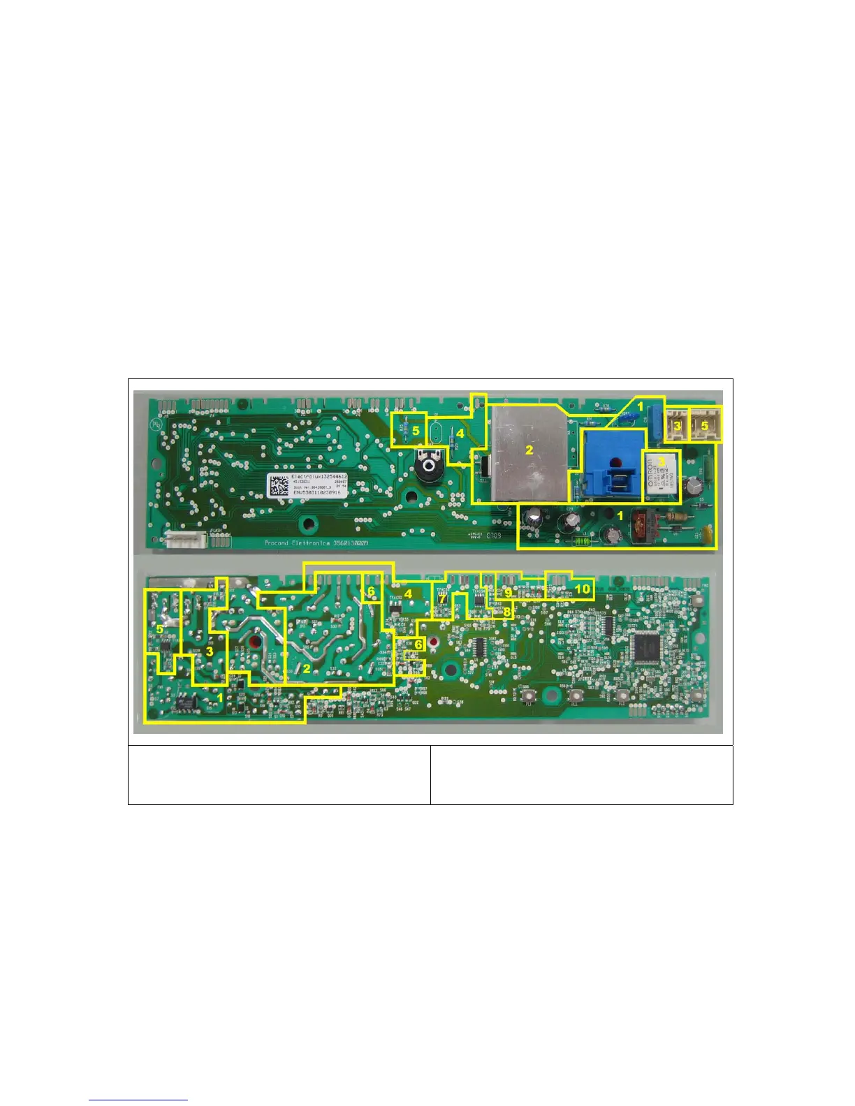 In case of burning on the main circuit board, check that the problem is not caused by another electrical component (short-circuits, poor insulation, water leakage). Refer