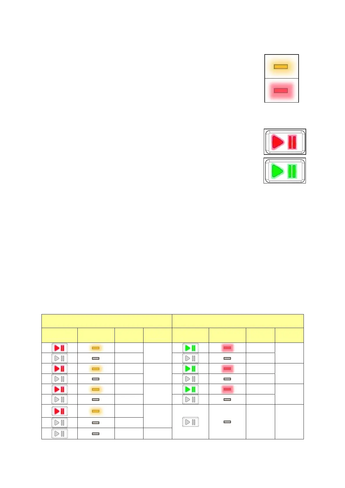 the button START / PAUSE with yellow and red light (0,5 seconds on, 0,5